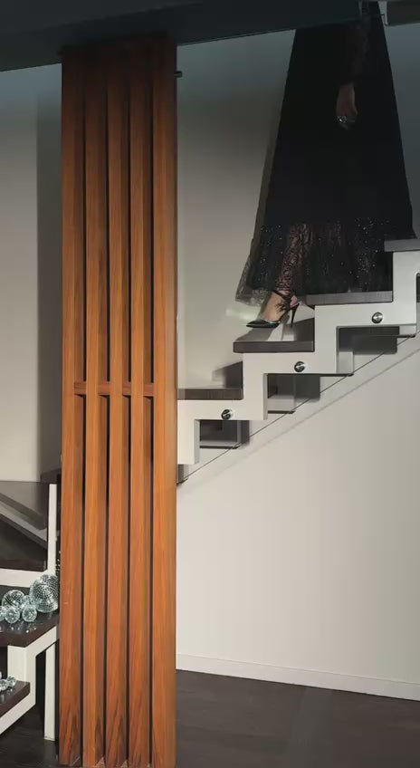 Рокля с миди дължина и свободна кройка. Ръкавите са от тюл с блестящ флок. Без ципове и закопчавания – удобно и стилно решение за всеки повод.