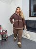 Удобен дамски комплект в ежедневен стил, изработен от мека и приятна материя. Включва суичър, яке тип анорак и панталон в еднакъв тон за хармонична визия. Подходящ е както за разходки и пътувания, така и за уютни моменти у дома.