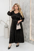 Рокля с блясък – празнична макси рокля, която излъчва лукс и стил! Цялата рокля блести, привличайки погледите. Удобните ръкави 3/4 с еластични маншети добавят практичност, а V-образно деколте подчертава женствеността и изтънчеността. Гърбът е украсен с елегантен шев по цялата дължина, придавайки допълнителна изтънченост. За максимален комфорт роклята е с трикотажна подплата. Включен е текстилен колан, който акцентира на талията. Това е идеалният избор за празнични събития, на които искате да изглеждате безупречно.