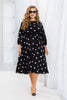 Тази женствена миди рокля разполага със своеобразен дизайн, който съчетава елементи от 80-те години и съвременните модни тенденции. Романтичният облик се подчертава от контрастния дизайн във вид на едри точки, които придават женственост и лекота. Тази рокля може да бъде прекрасен избор за пролетен или летен образ, когато е важно да изглеждате свежо и ярко. Дизайнът на роклята също така позволява лесно съчетаване с различни аксесоари и обувки, за да създадете уникален облик за всяка повод. Ръкавите на роклята са дълги 7/8 и са допълнени с ластик, който осигурява удобство при движение и придава оригиналност на целия образ. Талията може да бъде подчертана с пояс, включен в комплекта, който допълнително акцентира талията на роклята.