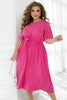 Лека рокля с миди дължина. Изработена от софт материя, което осигурява комфорт в горещо време. Роклята има полукръгло деколте и ластик на талията. Включен е колан за допълнение на визията. Ръкавите-крилца придават лекота и игривост, а страничните джобове са удобни за дребни вещи.  Моделът носи размер 2XL-3XL.