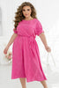 Лека рокля с миди дължина. Изработена от софт материя, което осигурява комфорт в горещо време. Роклята има полукръгло деколте и ластик на талията. Включен е колан за допълнение на визията. Ръкавите-крилца придават лекота и игривост, а страничните джобове са удобни за дребни вещи.  Моделът носи размер 2XL-3XL.