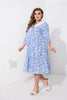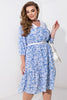 Закопчава се с редица копчета, разположени до отделната линия на талията, което добавя елегантност и оригиналност на образа. Ръкавите стигат до 3/4 дължина, а долната част на роклята е украсена с волан, който придава лекота и игривост.
