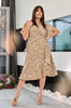 Рокля на цветя с прехвърляне. Женствена и елегантна рокля с абстрактен принт, която придава лекота и женственост на визията. Моделът е с прехвърляне, допълнен с въздушни ръкави-крилца, които се разтварят. Роклята се завързва с вшит колан, който преминава през отвор в страничния шев. На модела е показан размер 2XL-3XL.
