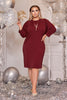 5XL-6XL: дължина на роклята 102 см, дължина на ръкава от деколтето 59 см, гръдна обиколка – 122 см, талия – 122 см, ханш – 122 см.
