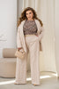 Раираните панталони съчетават елегантност и удобство, благодарение на премиалната костюмна материя, перфектния крой и стрелките, които визуално удължават краката и придават финес на силуета. Еластичната талия в задната част осигурява комфорт, а практичните джобове и закопчаването с копче и цип допълват функционалността. Този универсален модел е идеален както за официални съчетания с риза и сако, така и за по-небрежни визии с пуловер или топ, предоставяйки безкрайни възможности за стилни комбинации.