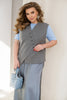 Късият раиран елек от премиум материя съчетава класика и модерен стил в един елегантен дизайн. Оригиналният крой привлича вниманието, а диагоналното разположение на копчетата добавя изящен акцент. Подчертава фигурата и придава увереност, докато имитацията на джобове носи декоративен чар. Висококачествената подплата осигурява комфорт през целия ден. Лесно се комбинира с блузи, ризи или леки пуловери, като създава стилни визии. Подходящ за съчетание с класически панталони или поли, този елек е перфектен избор както за делови срещи, така и за специални поводи.
