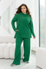 Лек костюм-двойка, изработен от мека и топла материя, който е идеален за съчетаване с маратонки и обемисти дънкови якета. В него влизат суитшърт с oversize кройка, дълги ръкави и качулка, както и актуални панталони-палацо с свободен силует, които разполагат с джобове на еластичен пояс в талията.