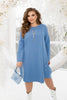 Рокля в свободна кройка – ново попълнение във вашия гардероб, което ще ви впечатли със стил и комфорт. Роклята с А-силует и удължена задна част е създадена за удобство и елегантност.По страните са разположени декоративни копчета, които придават допълнителен чар. Включеното украшение завършва елегантната визия на роклята.
