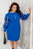 Облечена в елегантна едноцветна рокля с прав силует ще бъдете неотразима на всеки празник или парти. Този модел привлича вниманието предимно поради обемни полупрозрачни ръкави с бродерия и стегнати маншети с копчета. Моделът се закопчава с цип на гърба. Включена декорация.