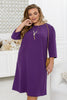 Елегантна и минималистична рокля с полукръгло широко деколте. Ръкав свободен без маншет с дължина 3/4. Няма крепежни елементи. Включена декорация.