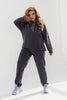Открийте елегантността и удобството с нашия стилен спортен комплект, изработен от практична тъкан, която съчетава комфорт и модерен дизайн. Комплектът включва пуловер с качулка и връзка, което придава спортен вид, докато липсата на джобове и ципове подчертава нейната лаконичност. Ръкавитеи долната част са с маншети осигуряват допълнителен комфорт, а малките странични цепки допълват елегантния външен вид. Отзад пуловера е леко удължена, което добавя усещане за модерност.