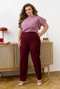Класически панталони с висока талия за комфорт при носене. Задната част е с ластик, който позволява перфектно прилягане по фигурата. Отпред има декоративен кант, придаващ стилен вид. Джобовете са вшити в страничните шевове и осигуряват удобно съхранение на малки вещи. Панталоните са отличен избор за тези, които ценят комфорт и елегантен стил.