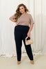 Класически панталони с висока талия за комфорт при носене. Задната част е с ластик, който позволява перфектно прилягане по фигурата. Отпред има декоративен кант, придаващ стилен вид. Джобовете са вшити в страничните шевове и осигуряват удобно съхранение на малки вещи. Панталоните са отличен избор за тези, които ценят комфорт и елегантен стил.