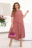 Миди рокля в свободна кройка. Елегантна рокля, която ще ви помогне лесно да създадете цялостна и хармонична визия. Отличителна черта на модела е асиметричният волан. Роклята е допълнена с къси ръкави без маншети и скрити джобове в страничните шевове.