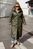 Дълго капитонирано яке с пришита качулка, висока яка и дълги ръкави. Този модел продължава да бъде хит на модните подиуми вече втори сезон. Якето се закопчава с ред копчета отпред и е допълнено с накладни джобове. Лесно се комбинира с различни елементи от гардероба, а с пълнеж от синтепон 200 и силикон ще бъде топло и комфортно. Завършете визията с високи ботуши и чанта за стилен и удобен аутфит.
