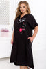 Лека рокля с качулка в спортен стил. С V-образно деколте, преминаващо в качулка с връзка. Ръкавите са с отпуснат крои и малък маншет, а долната част е удължен в задната част със странични цепки за повече свобода на движенията. Разполага със странични джобове. Достъпна в два варианта: флорален принт и изчистен с апликация.