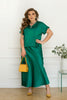 Костюм от плътен сатен, включващ блуза и пола. Блузата с V-образно деколте и къси ръкави с маншети осигурява комфорт и стил, а дългата пола с еластична талия не ограничава движението. Леката и гладка материя подчертава силуета и осигурява усещане за удобство. Моделът на снимката носи размер 2XL-3XL.