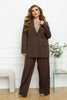 Стилно сако от костюмна материя с премиум качество, съчетаващ класически елементи с модерни детайли. Сакото запазва формата си благодарение на допълнителен слой, който укрепва тъканта и детайлите. Разполага с подплата, подплънки на раменете и джобове (джобовете са зашити и трябва да се разрежат). Дългите ръкави са прави, а закопчаването е с две копчета. Вертикалните и хоризонтални шевове осигуряват перфектно прилягане по фигурата. Сакото се комбинира лесно с панталони или пола, позволявайки разнообразни стилови решения. Моделът на снимката носи размер 2XL-3XL.