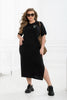 Миди рокля с цепка. Базова рокля-тениска с права кройка, кръгло деколте и къси ръкави с маншети. Роклята е украсена с надпис от камъни. Свободният крой и базовите цветове създават минималистичен и удобен стил. Коланът не е включен в комплекта.