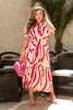 Миди рокля с колан. Рокля с елегантен дизайн, която подчертава женствеността. Закопчава се с редица копчета отпред. Късите ръкави с ластик на маншетите осигуряват удобство. Долната част на волан добавя лекота и обем на роклята. Страничните джобове я правят практична и функционална. В комплект с текстилен колан, който подчертава талията и осигурява удобно прилегане благодарение на ластик отзад. Манекенката е облечена в размер XL-2XL.