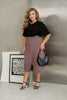 Открийте уникалната пола с нестандартен крой, която придава динамика и изразителност на вашия стил. Полата се закопчава с две стилни копчета, които са не само функционален, но и декоративен елемент. Еластичната лента на талията отзад осигурява комфорт и перфектно прилепване, адаптирайки се към вашите движения и подчертавайки линията на талията. Тя се съчетава прекрасно както с обикновени тениски за ежедневни визии, така и с елегантни блузи за по-формален вид. Тази пола изразява вашата индивидуалност и смелост.