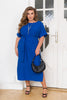 Семпла миди рокля с права кройка, изработена от комфортна материя. С къс ръкав с маншет за лекота и свобода на движение. Включеният мек текстилен колан подчертава талията и оформя силуета. Подходяща както за ежедневието, така и за по-официални поводи. Предлага се в едноцветни и принтирани варианти според настроението. На модела е размер 4XL-5XL.