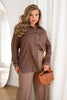 Свободна риза с дълги ръкави и джоб на гърдите. Свободният силует осигурява комфорт и свобода на движение, а дългите ръкави добавят усещане за уют. Закопчава се с копчета, което позволява различни варианти на стила – от разкопчана за непринуден вид до напълно закопчана за по-официален вид. Ризата стои добре както самостоятелно, така и в комбинация с други дрехи. Коланът не е включен в комплекта. Моделът на снимката носи размер 4XL-5XL.