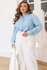 Свободна риза с дълги ръкави и джоб на гърдите. Свободният силует осигурява комфорт и свобода на движение, а дългите ръкави добавят усещане за уют. Закопчава се с копчета, което позволява различни варианти на стила – от разкопчана за непринуден вид до напълно закопчана за по-официален вид. Ризата стои добре както самостоятелно, така и в комбинация с други дрехи. Коланът не е включен в комплекта. Моделът на снимката носи размер 4XL-5XL.
