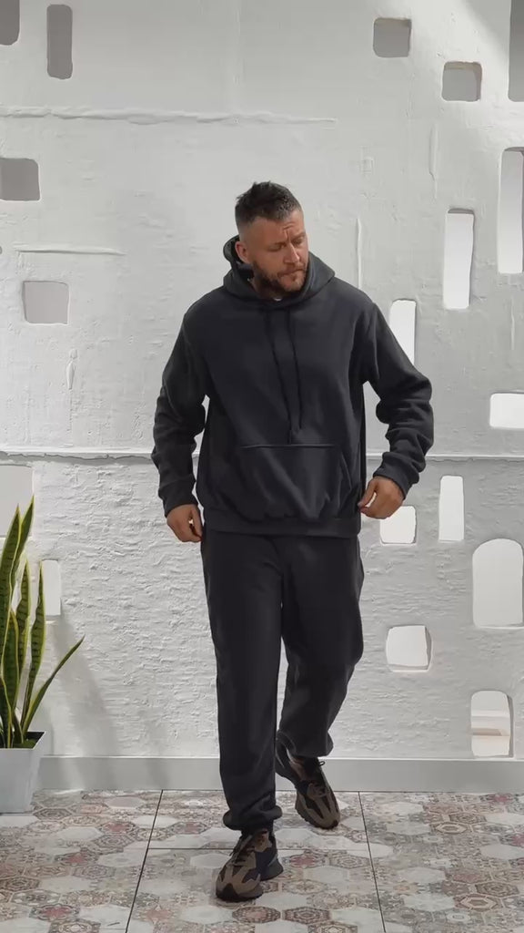 Мъжки зимен костюм от много плътен флийс с мек начес, с качулка за допълнителен комфорт. Панталоните и ръкавите са с маншети, панталонът е с еластична талия и странични джобове, осигуряващи удобство и практичност в студените дни.
