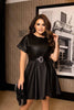 Модел от еко кожа с къса дължина и къси ръкави. Включен колан, който подчертава талията и придава завършен вид на роклята. Съчетава стил и удобство, подходяща за вечерни визии.