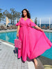 Дълга рокля с прехвърляне, изработена от софт-коприна. Дължина 143 см. Облича се тип „прегърни ме“ с прехвърляне на горната част, което позволява регулиране на деколтето – по-закрито или по-отворено в зависимост от разположението на презрамките. Лека и приятна на допир материя.