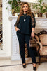 Елегантен дамски комплект с изчистен дизайн и ненатрапчив декор. Блузата е с полуприлепнал силует, разкроена от талията надолу, изработена от приятна и еластична материя. Този комплект подчертава стил и женственост, подходящ за официални събития и специални поводи.