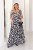 Дълга рокля от софт с дължина 150 см. Регулируеми презрамки и цип на гърба. Интересен десен, който придава стил и елегантност на визията.