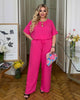 Стилен и удобен комплект от две части в наситени цветове — свободна блуза с къс ръкав и прави панталони. Моделът осигурява комфорт и елегантна визия, която стои красиво на фигурата.