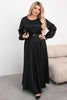 Коланът е включен в роклята и подчертава силуета с фин завършек.