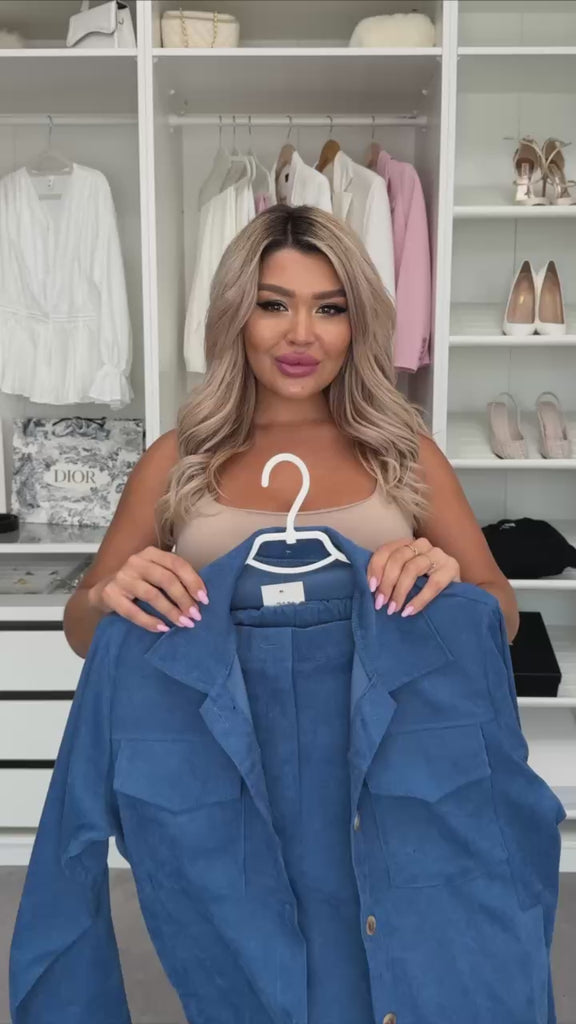 Модерен комплект: яке + пола с цепка – задължителен за сезона. Изработен от памучно кадифе за комфорт и стил.