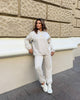 Стилен спортен комплект с бродерия – оверсайз кройка, перфектен за разходки. Суичърът е с връзки в долната част, които позволяват да го носите както удължен, така и повдигнат.