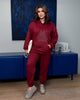 Костюм от мека велурена материя с горнище с качулка и апликация. Панталоните са с маншети и ластична талия за максимален комфорт и удобство.