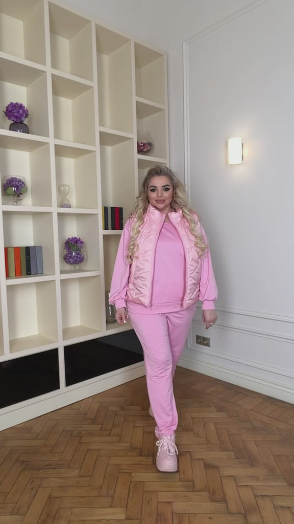 Стилен комплект от 3 части: трикотажен костюм и елек от шушляк с цип