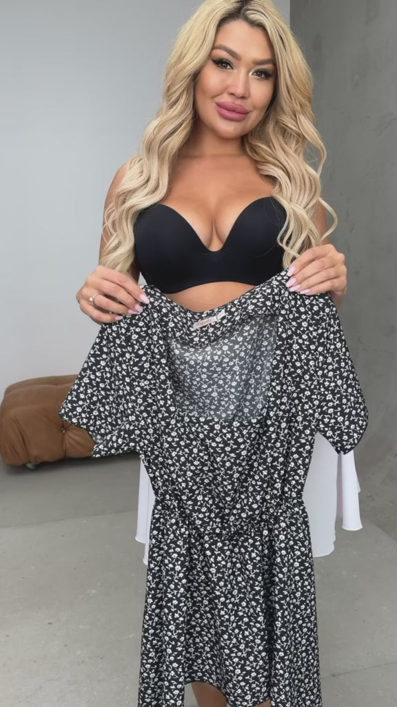 Лека рокля в два цвята, изработена от ефирна материя, която пада красиво по тялото. Долната част е под формата на сваляща се пола, а талията е с ластик за максимален комфорт. В комплекта е включен колан от същата материя за допълнително подчертаване на силуета.