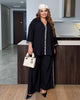 Стилен дамски костюм от лека лятна костюмна материя — идеален за топлите дни. Комплектът включва свободна риза с яка и широк панталон, които осигуряват комфорт и стоят красиво по фигурата. Контрастните декоративни елементи придават модерен акцент, а моделът е подходящ както за ежедневието, така и за по-елегантни поводи.