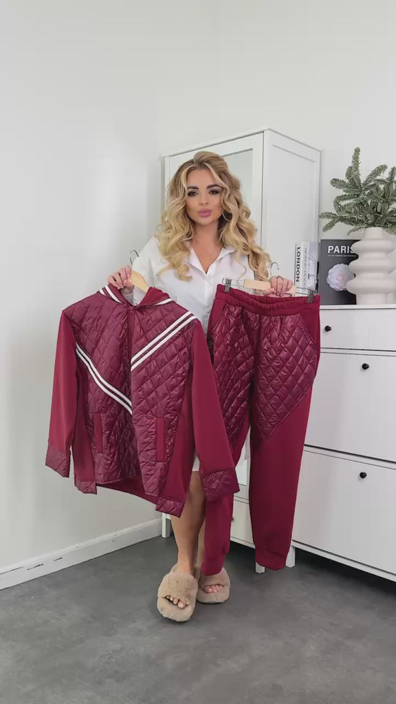 Топъл и приятен на допир комплект от две части с високо качество. Суичърът е с цип, качулка, големи странични джобове и маншети на ръкавите и в долната част. Панталоните са с ластик на талията и странични джобове – удобен и стилен избор за всеки ден.