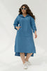 Рокля от лен с качулка. Модерна и стилна рокля в миди дължина и спуснати рамене. Роклята е в свободна кройка в стил овърсайз с дълъг ръкав. Малко V-образно деколте, преминаващо в качулка. Дизайнерите добавиха голям функционален джоб на предната част на роклята. Роклята е удължена в задната част. На модела е показан размер 2XL-3XL.