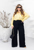 Тези класически панталони от кадифе съчетават текстура и комфорт в една елегантна визия. Меката материя с изразен рипс придава дълбочина и изискан вид, а ръбовете оформят силуета и визуално издължават краката. Моделът е с удобни джобове и еластична вложка отзад на талията за по-добро прилягане. Закопчава се с копче и цип за сигурност и перфектен завършек. Подходящи както за офис, така и за ежедневни стилни комбинации с ризи, блузи или жакети. Коланът не е включен в комплекта.