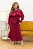 Материята е гладък коприн с благороден сатенен блясък, който играе с движението и акцентира всеки контур. Комплектът е перфектен за официални поводи, вечерни събития или специални излизания, когато искате да изглеждате женствено и уверено. Моделът е показан в размер 4XL–5XL